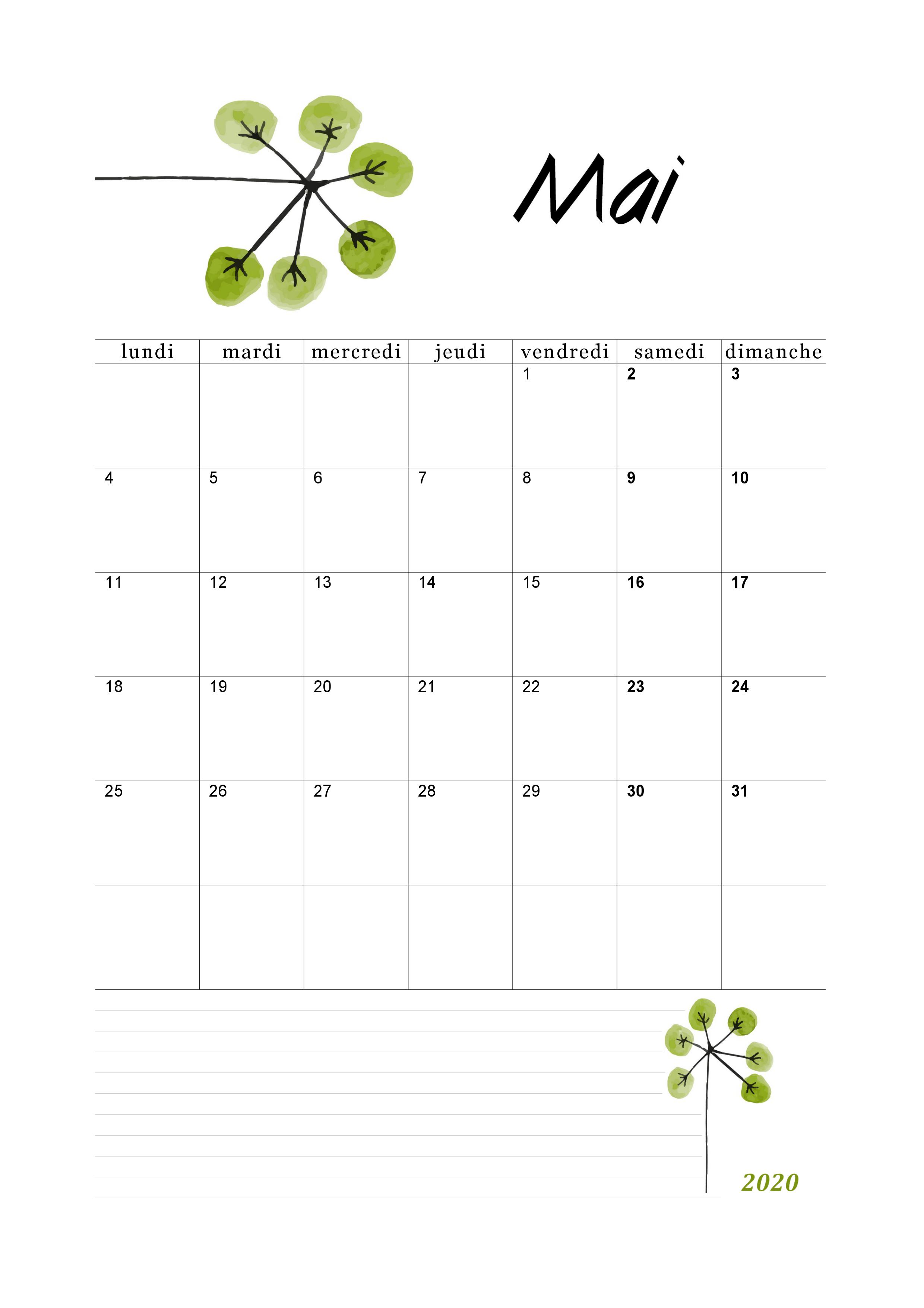 Calendrier A Imprimer Gratuit 2020 Mois Par Mois