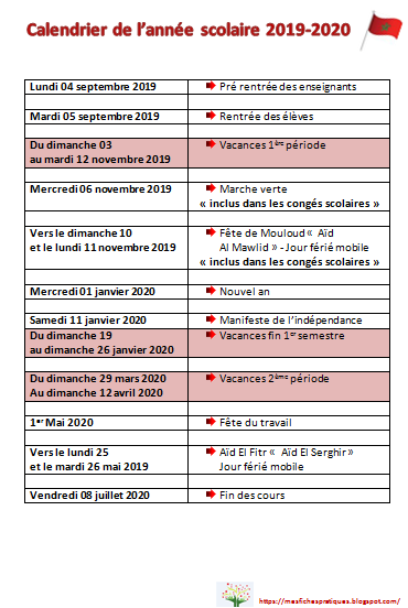 Calendrier Jours Feries Maroc 2020 Et 2021 Imprimer