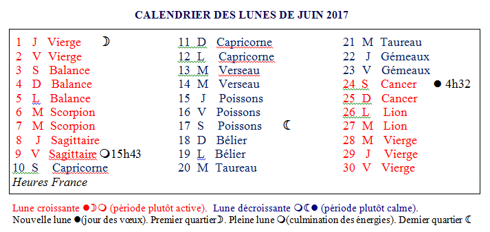 Calendrier Lunaire Juin 2017 Calendrier Lunaire Calendrier