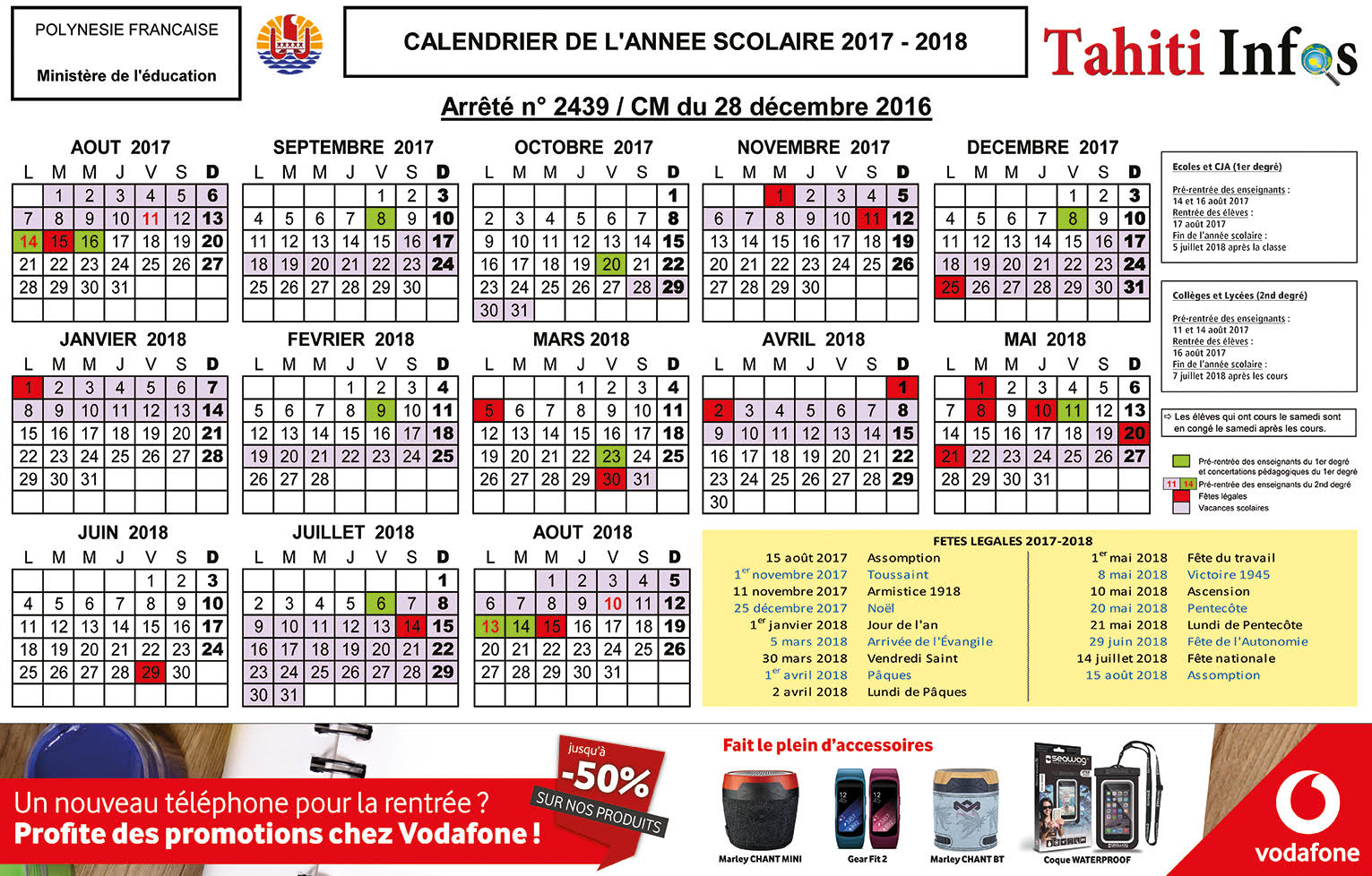 Votre Calendrier Scolaire 2017 2018 A Telecharger