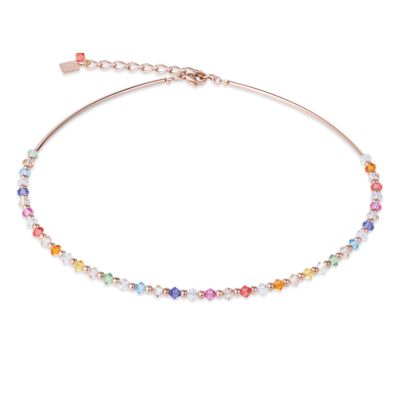 Necklace Swarovski Crystals Stainless Steel Rose Gold Multicolour Pastel Coeur De Lion