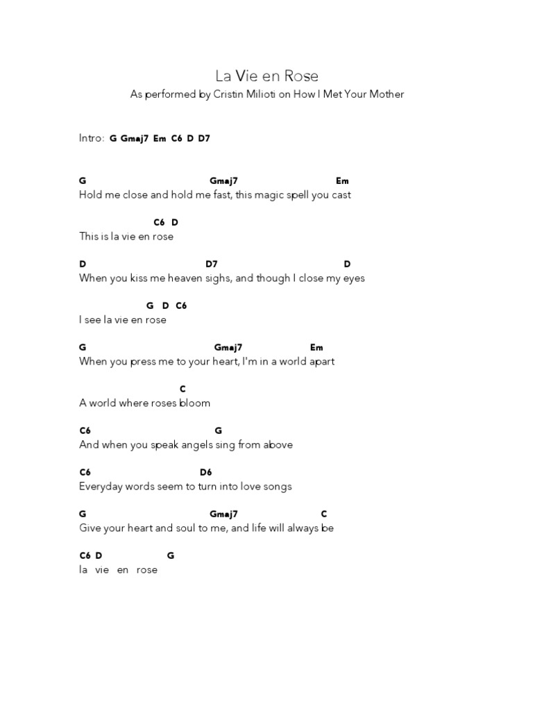 Song Lyrics With Guitar Chords For La Vie En Rose Louis