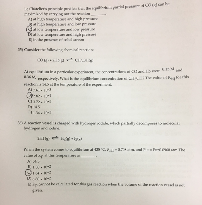 Solved Le Chatelier S Principle States That If A Chemical