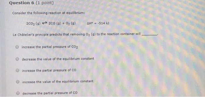 Solved Question 6 1 Point Consider The Following Reacti