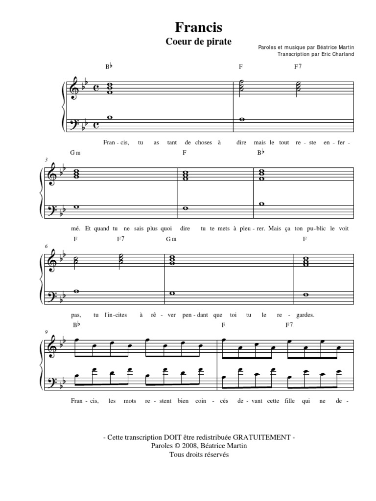 Francis Piano Sheet Music Coeur De Pirate Digital Sheet Music