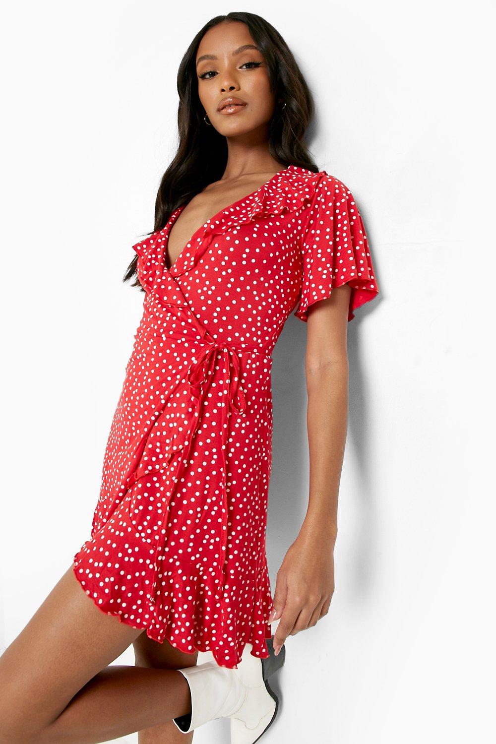 Petite Polka Dot Ruffle Wrap Tea Dress Boohoo