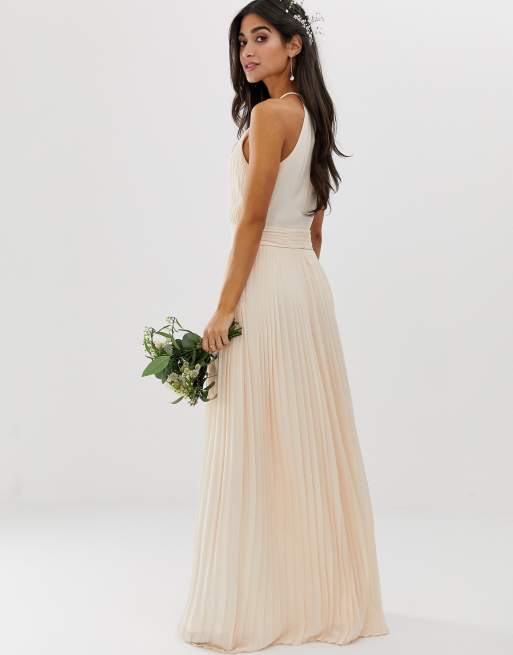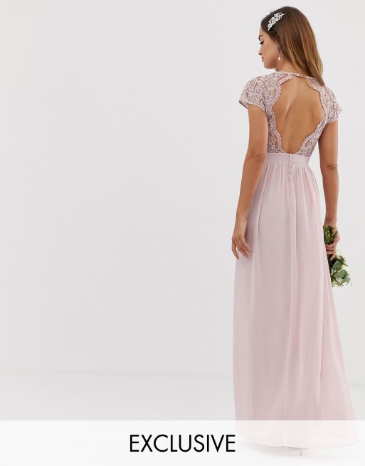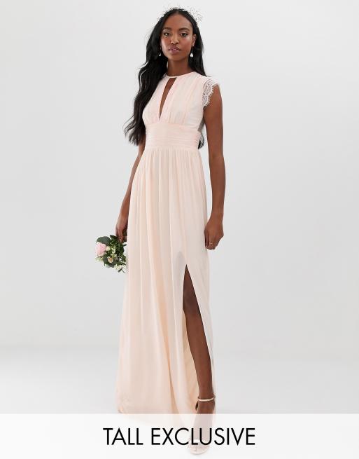 Tfnc Tall Lace Detail Maxi Bridesmaid Dress In Pearl Pink Asos