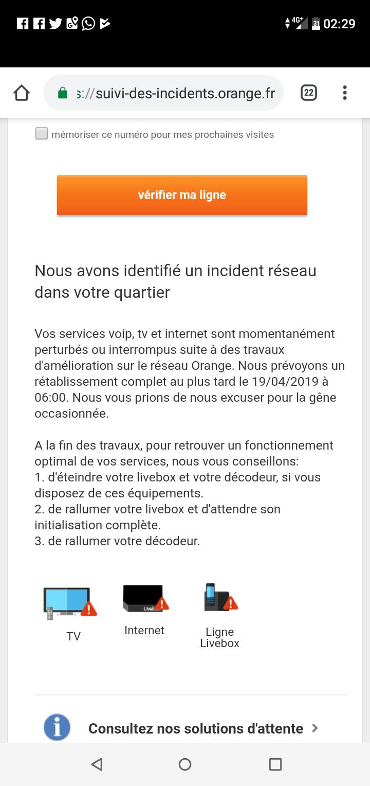 Bienvenue Au Suivi Des Incidents Orange Fr Page Infos Reseau